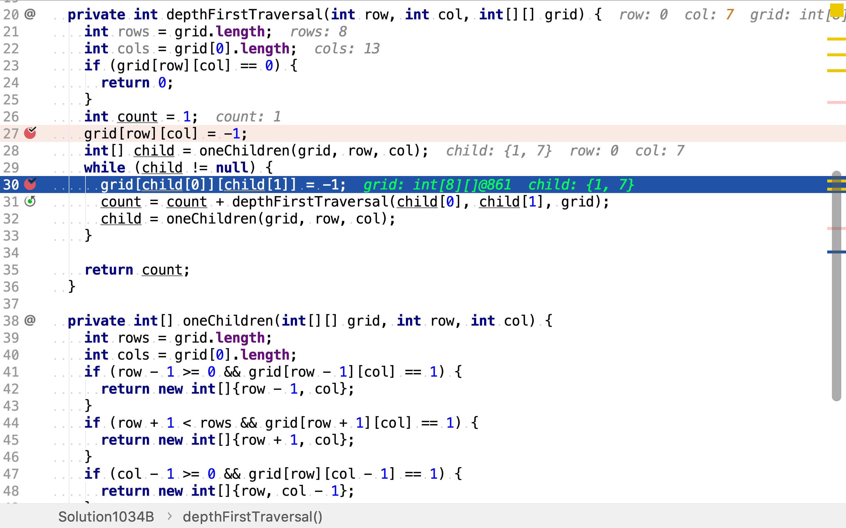 每个点至多被访问五次,第一次从1转为-1,第二至第五次被以上下左右点的相邻点被检测。时间复杂度为。