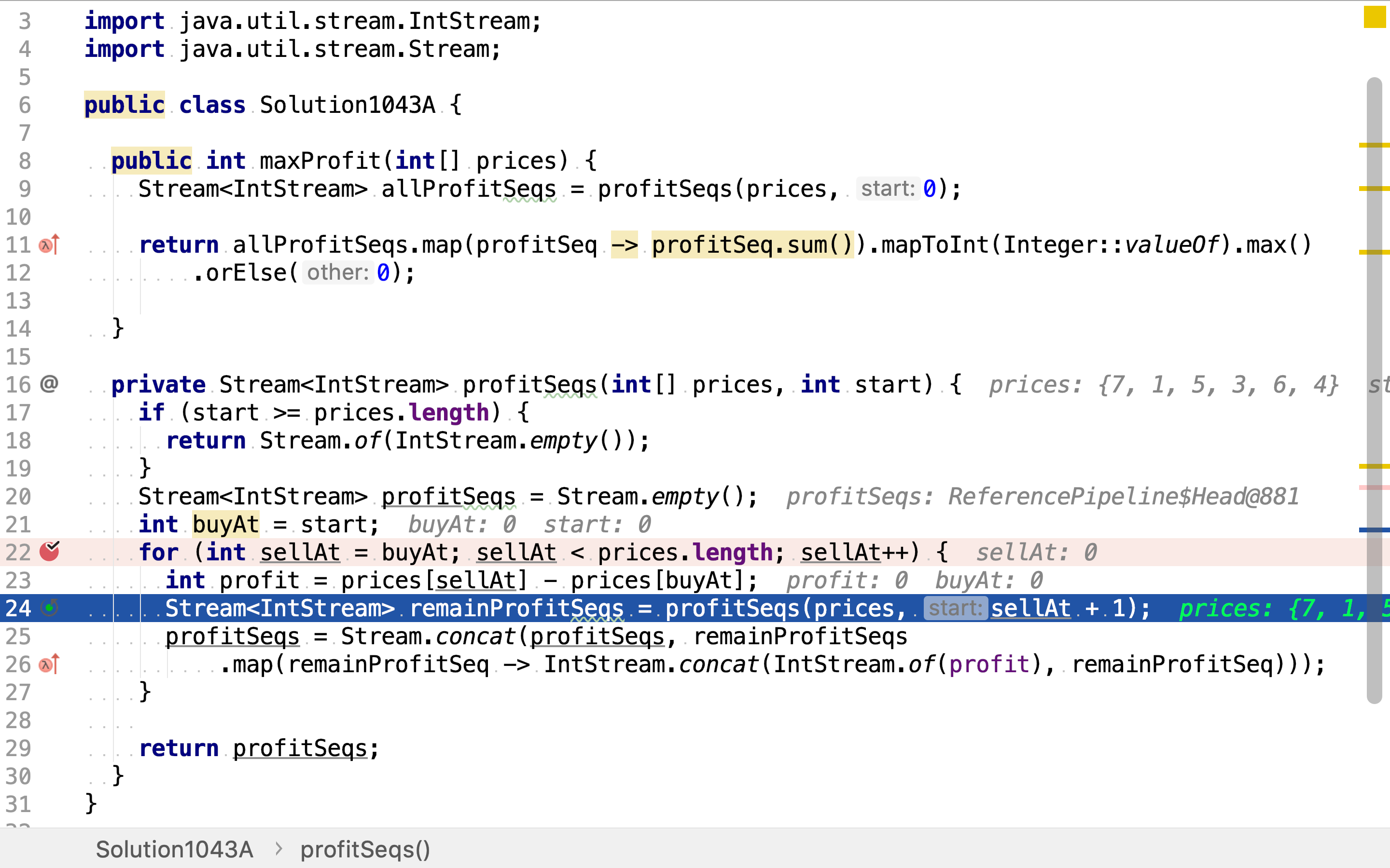 然后,如果剩余价格列表不空,则继续在第一天(剩余序列中的第一天)买入,在利润开始下降前卖出。得到利润和剩余价格序列。