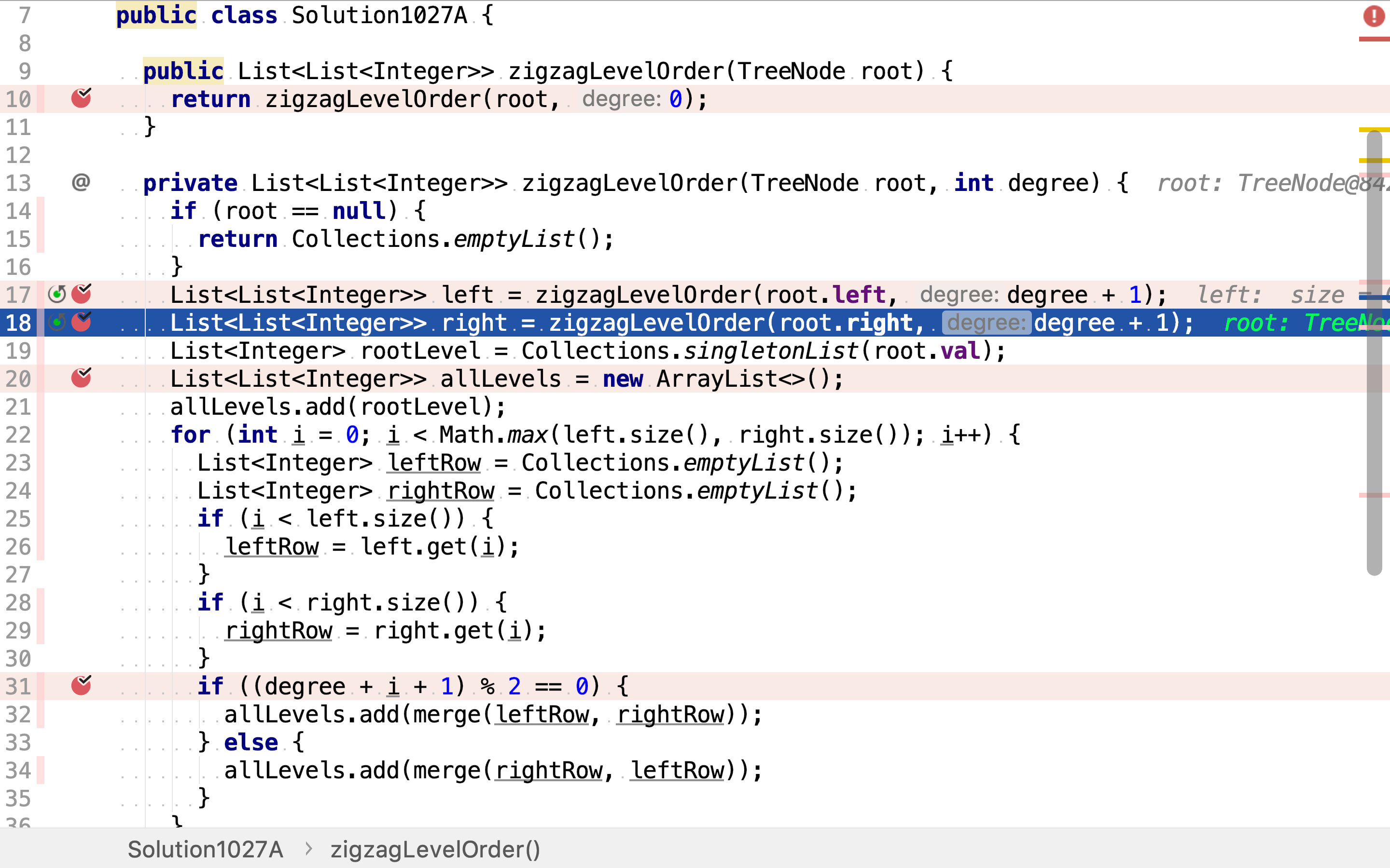List<List<Integer>> left = zigzagLevelOrder(root.left, degree + 1);