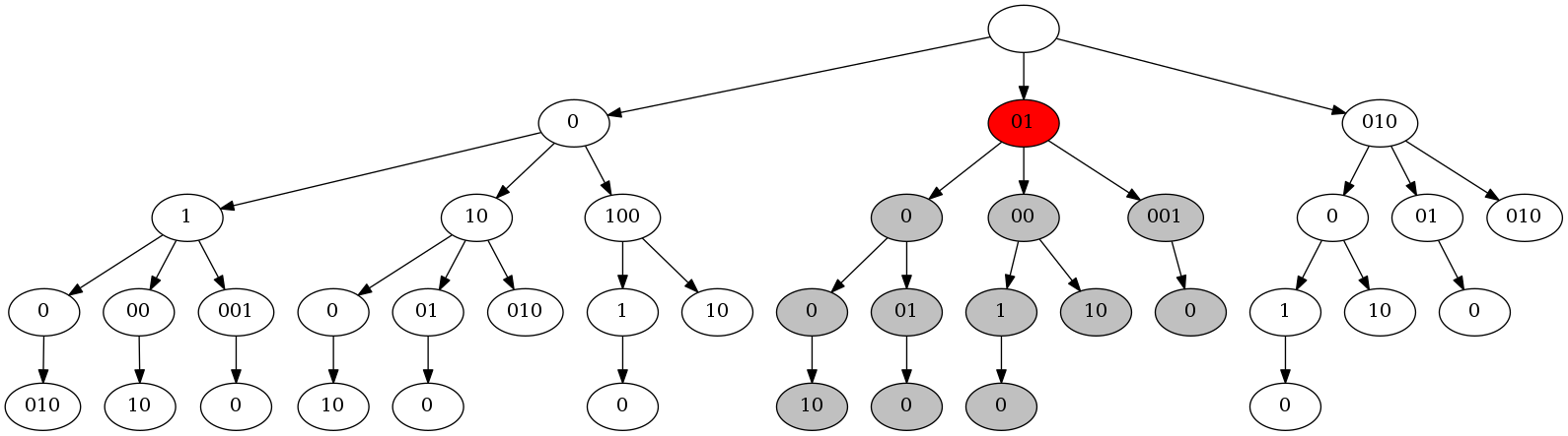 举个例子,给定字符串010010。将其拆分组合以深度为4的树展示: