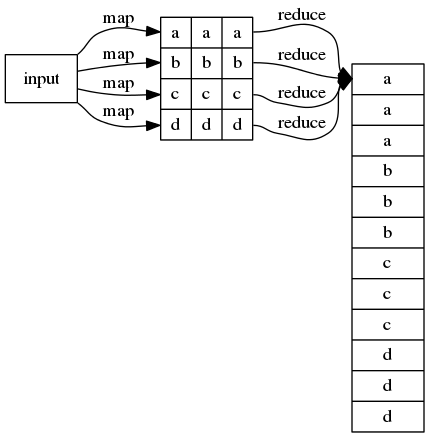 这个问题可以分两步来解,先将列表的每个元素都转换成列表,列表表包含指定个数重复的原元素,然后再把所有列表拼接成一维列表即为结果。为简洁及逼格,可以套用MapReduce(对映归纳)范式。MapReduce中的主要概念「Map(对映)」和「Reduce(归纳)」是从函数式程序设计语言借来的。简单来说,一个对映函数就是对列表上每一个元素进行指定的操作,并将结果存储于新的列表中。而归纳操作则是对一个列表的元素进行适当的合併。