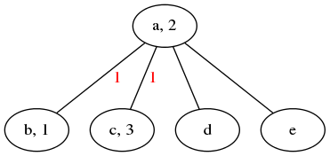 如下图,从b开始给点分配序号。当分到c时,边的序号就出现了重复。此时就无需再罗列d和e的序号组合了。因为无论d和e序号如何,整个组合都不会是符合条件的解。